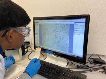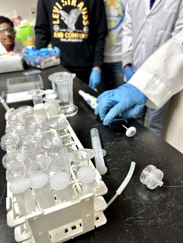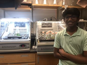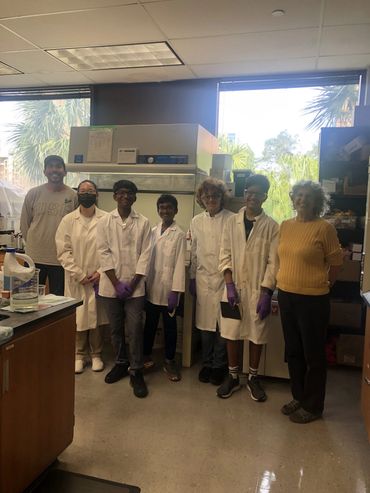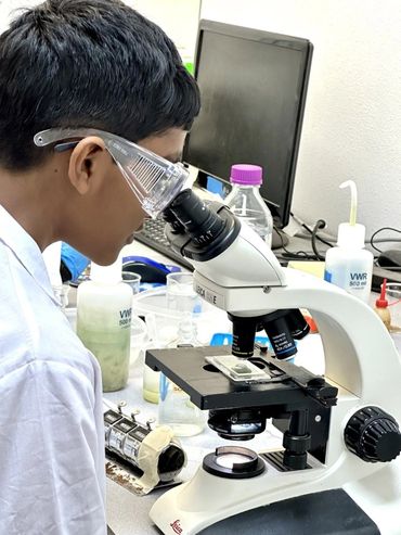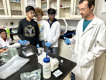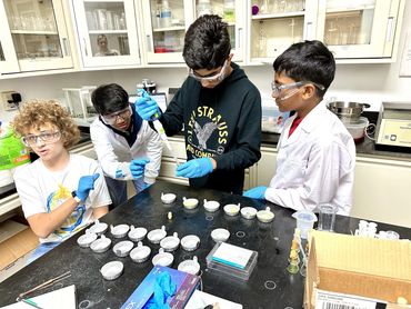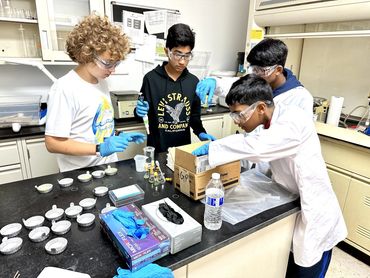 The scientists in lab (left to right): Rishik Yellu, Felix Ratner, Yatharth Kakkad, and Rugan Suresh, all eighth graders attending Pine View School in Osprey, FL